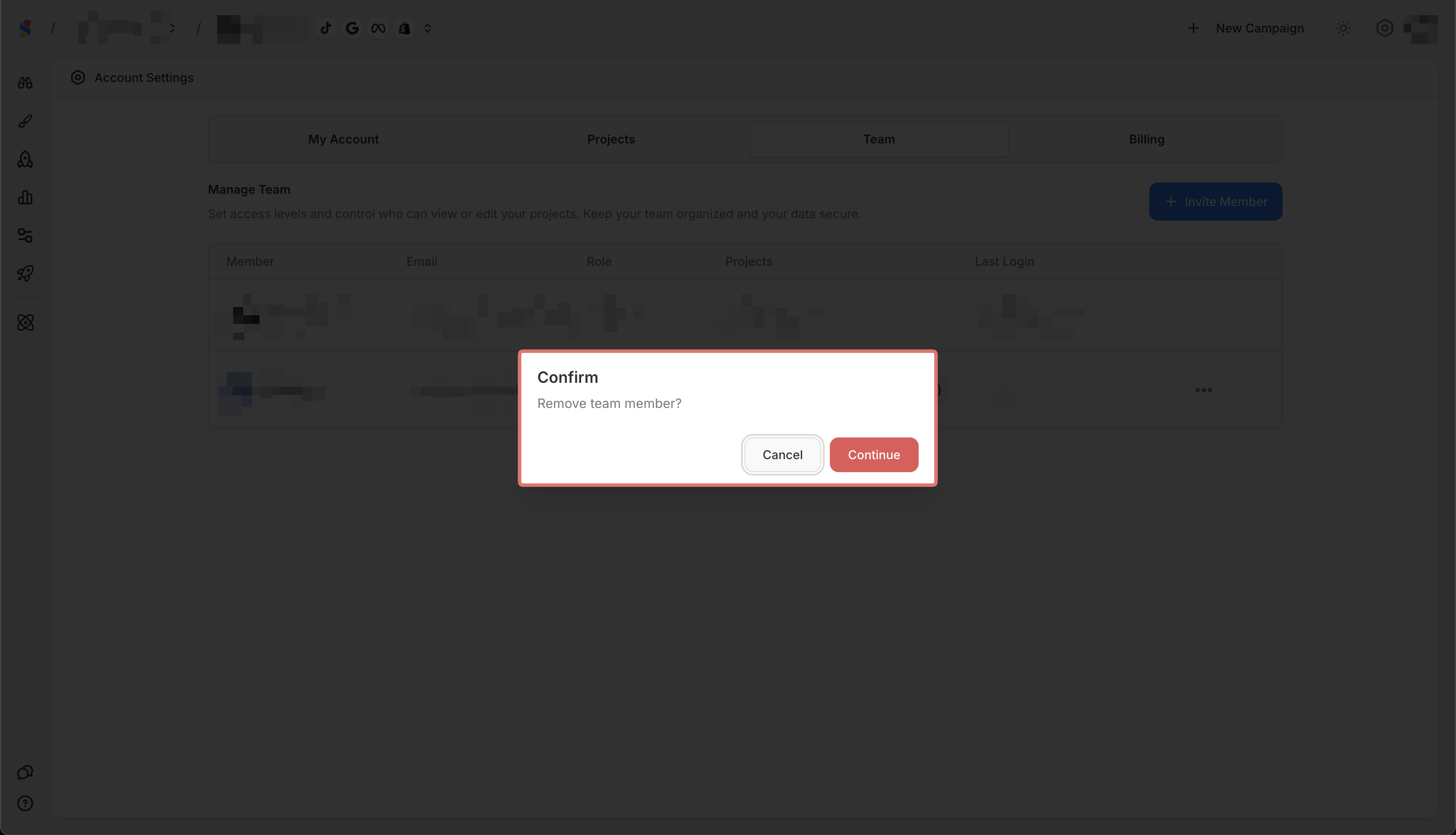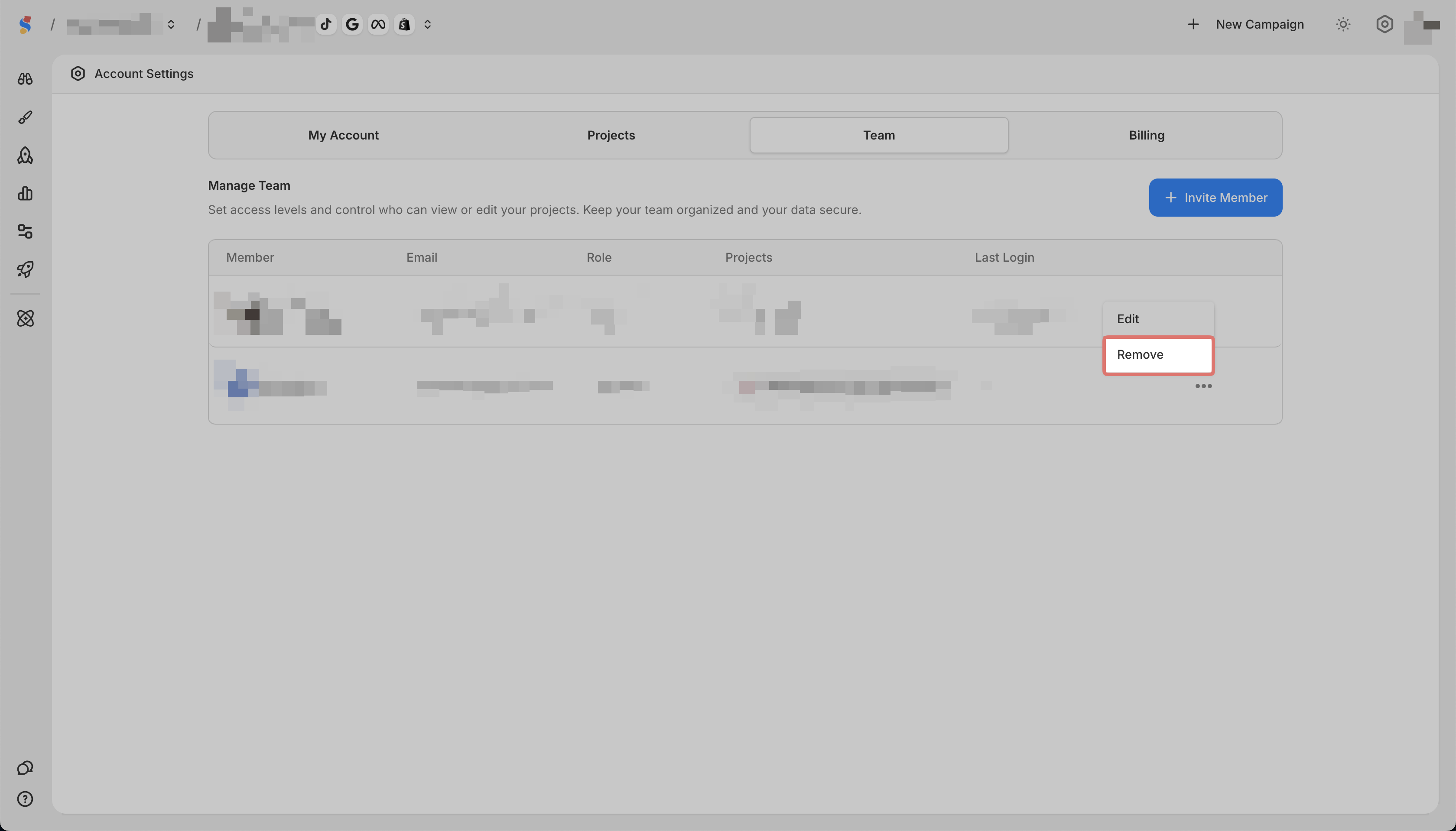 You can remove team members who no longer need access.