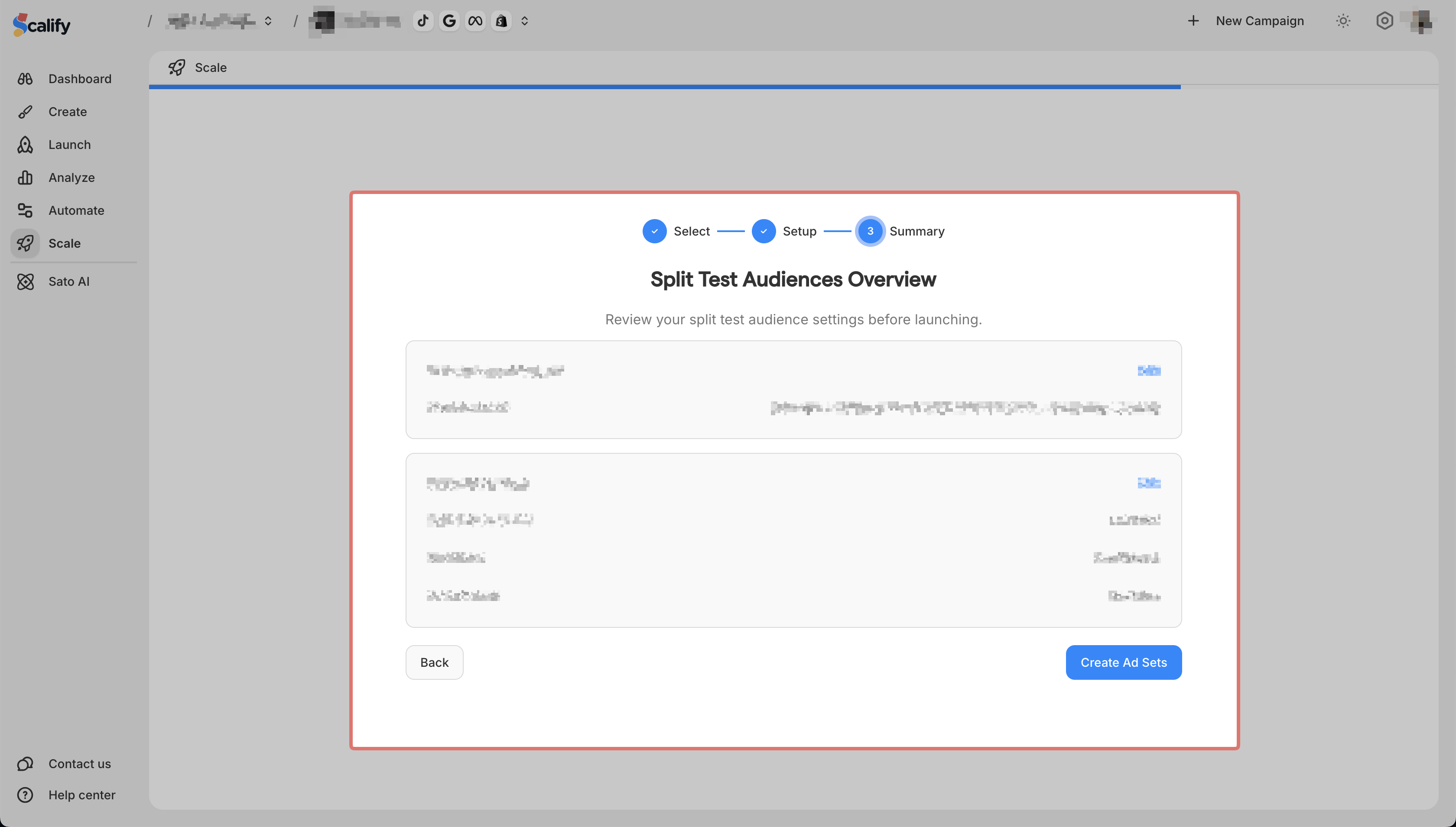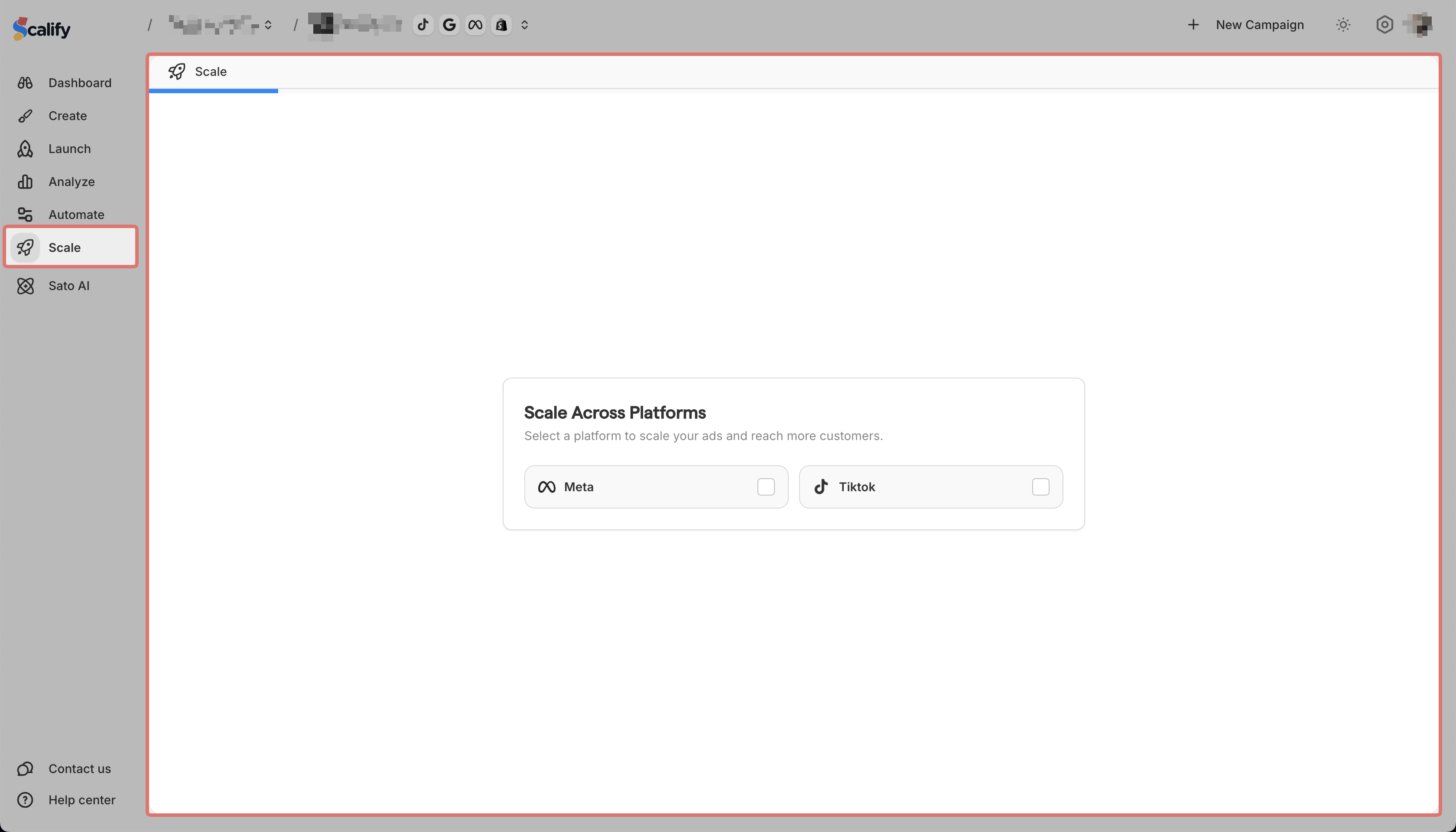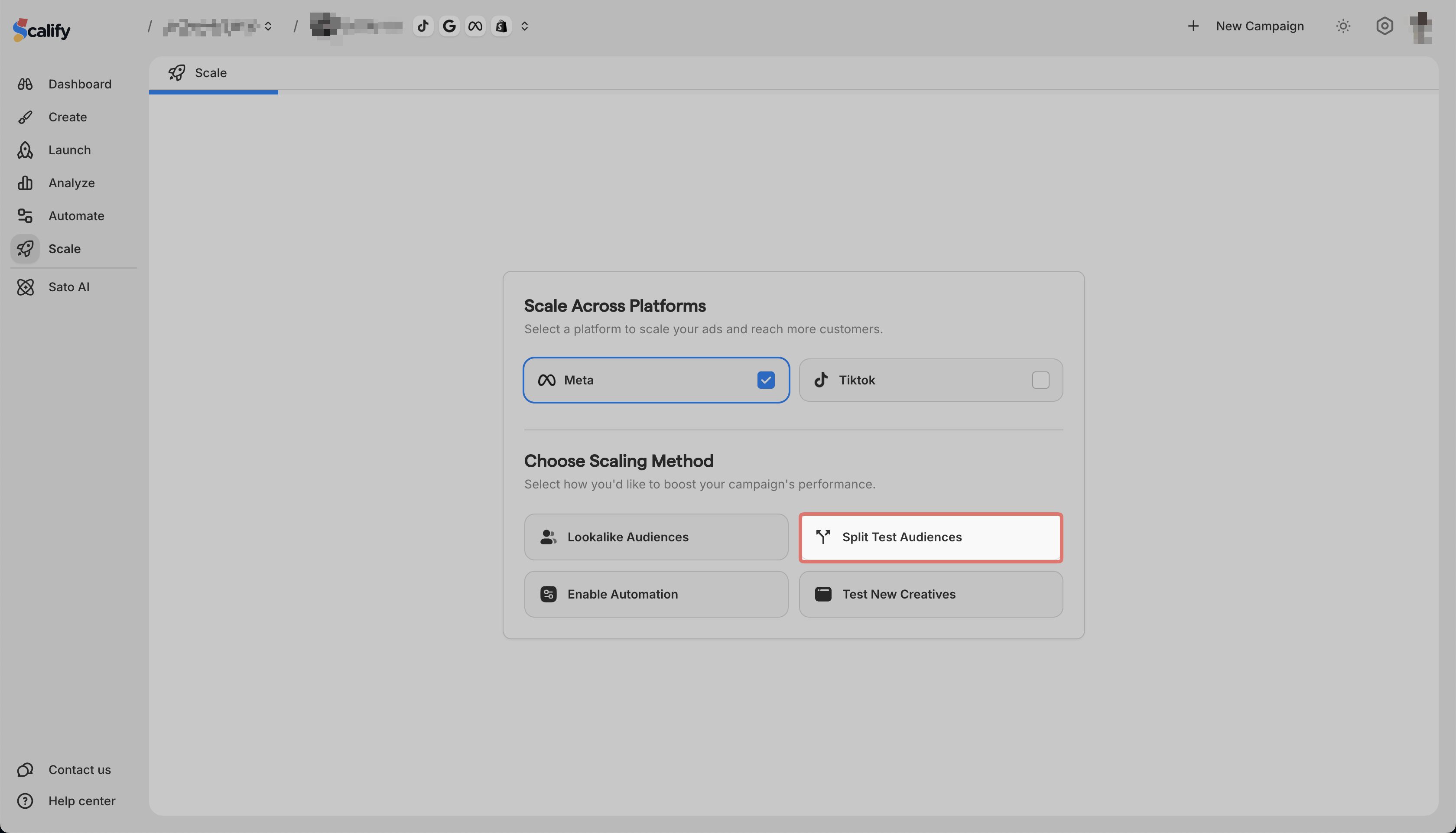 Go to Scale in the sidebar and select the Platform you want to test audiences on