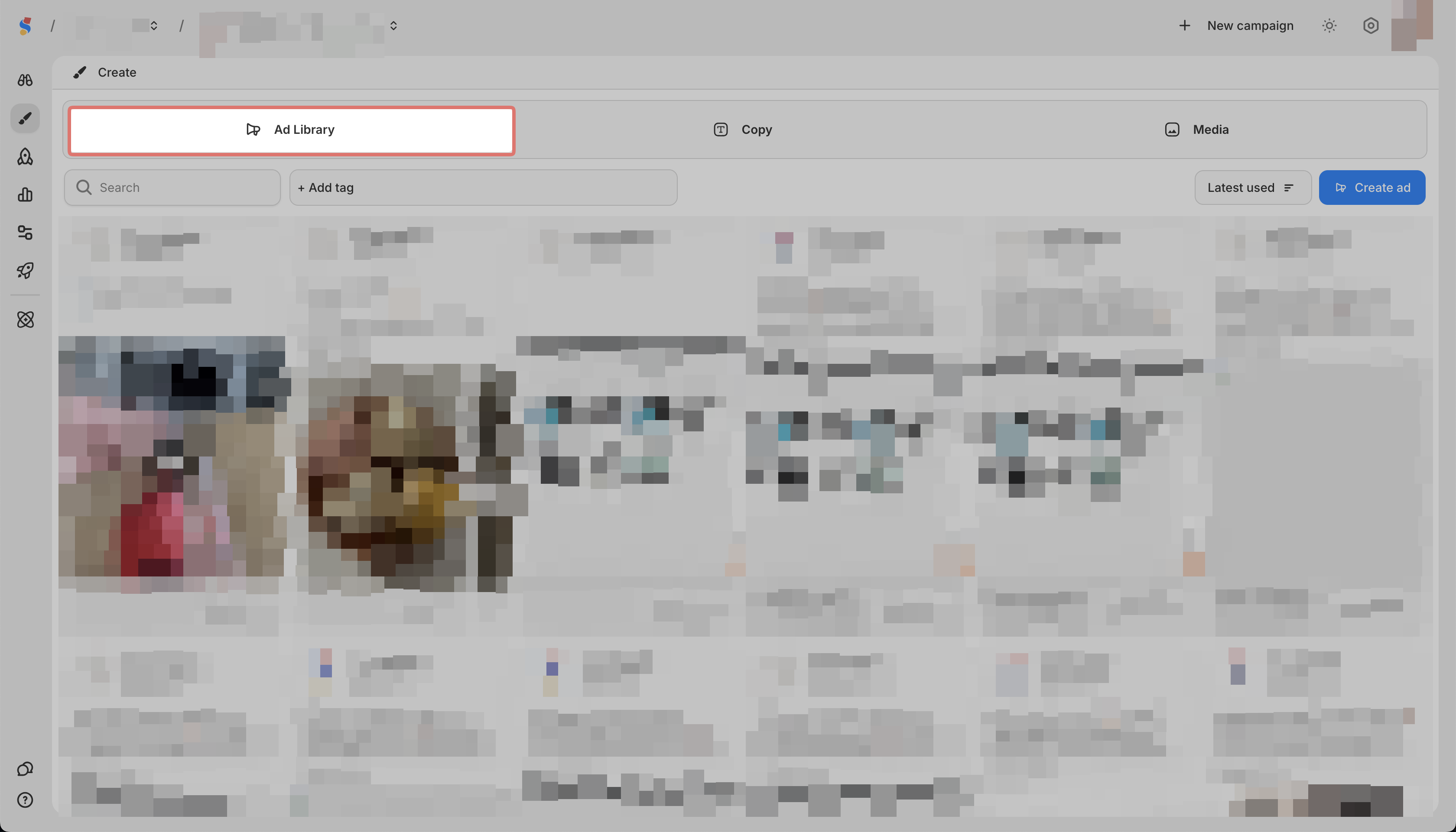 Go to Create > Ad Library