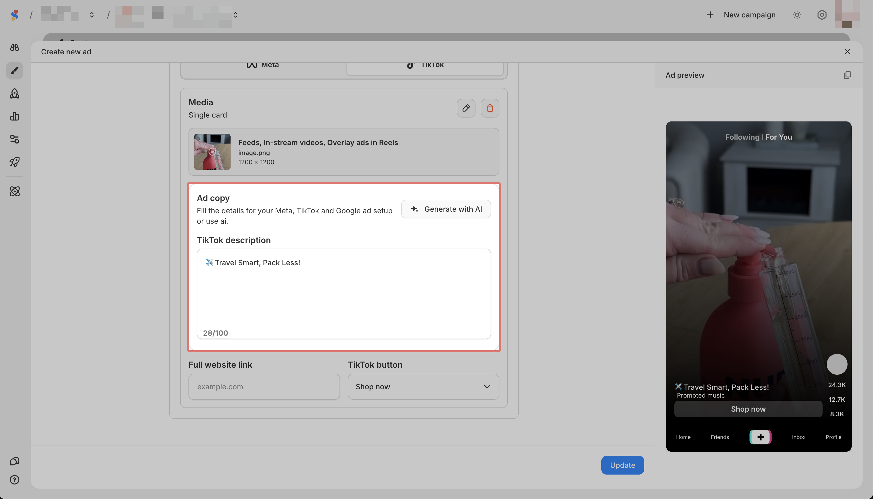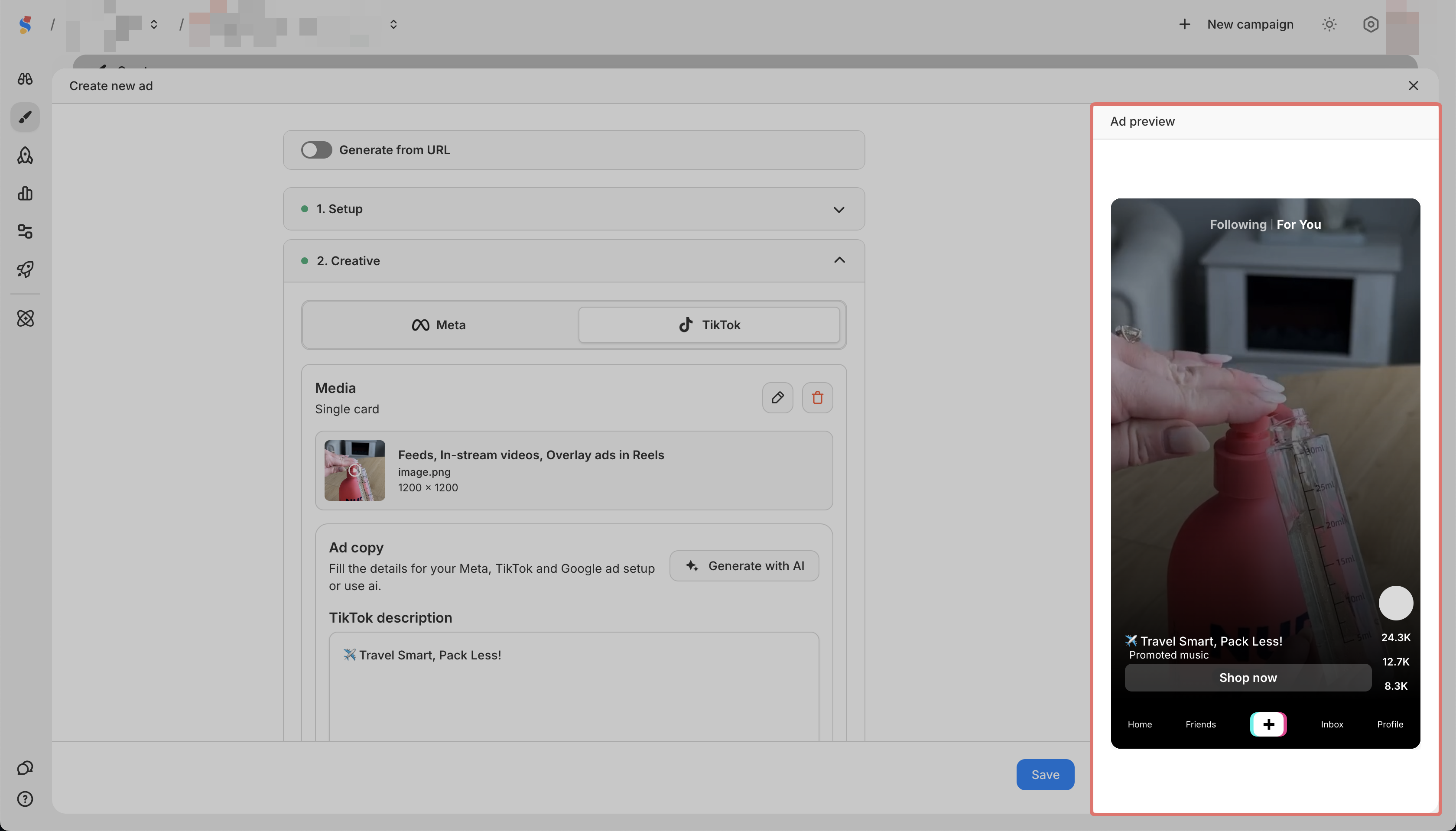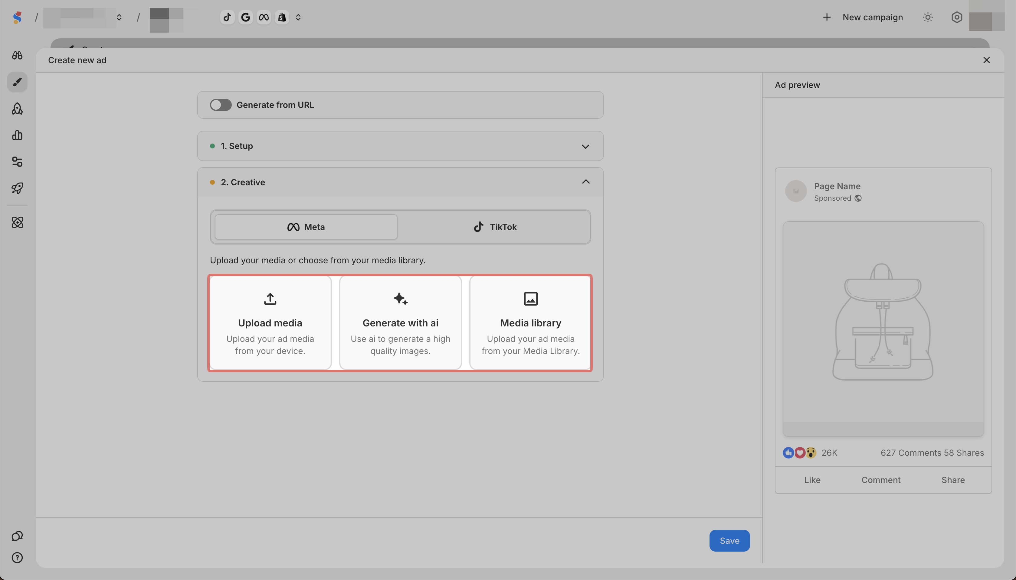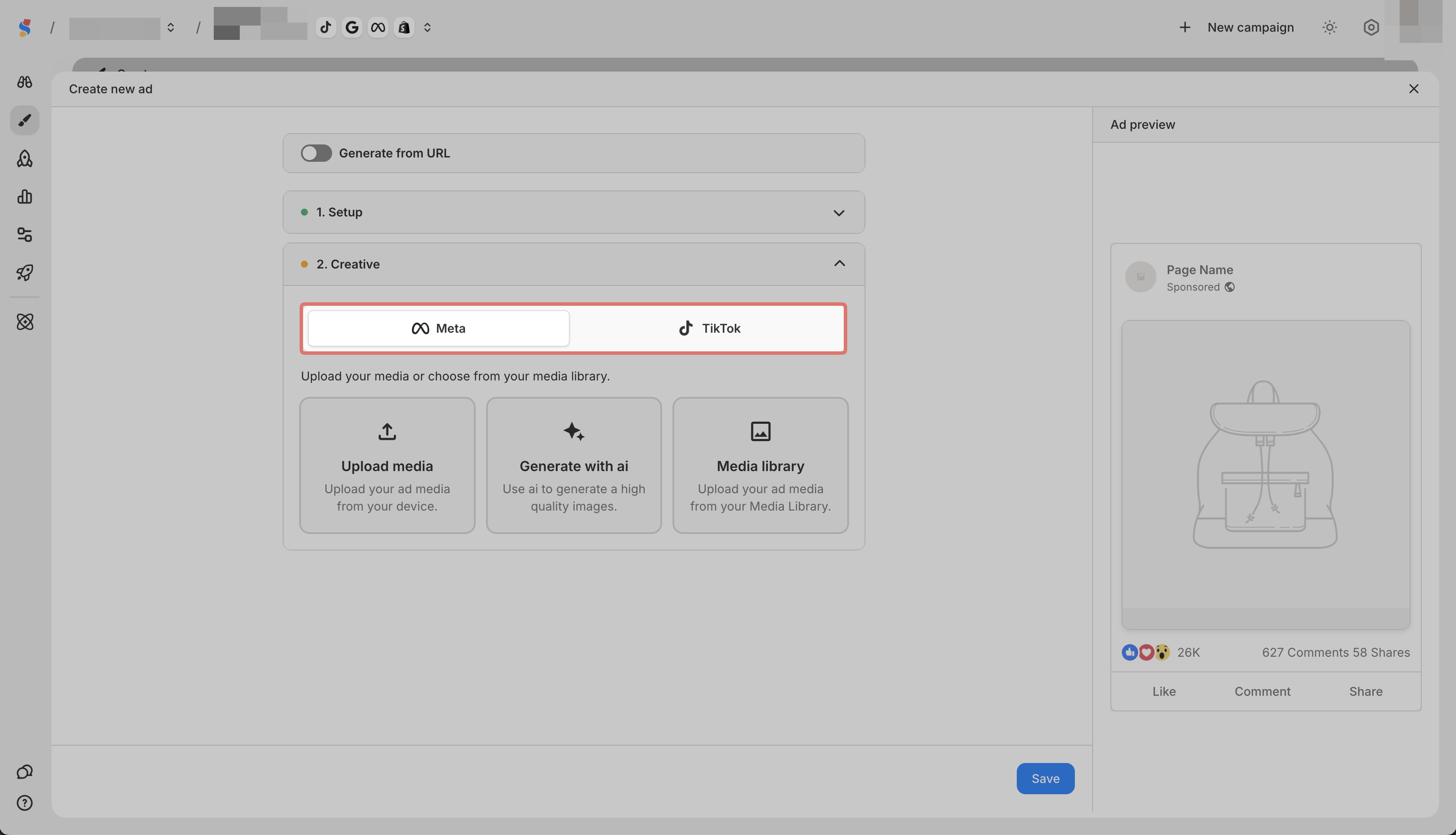 In Creative, select Meta or TikTok