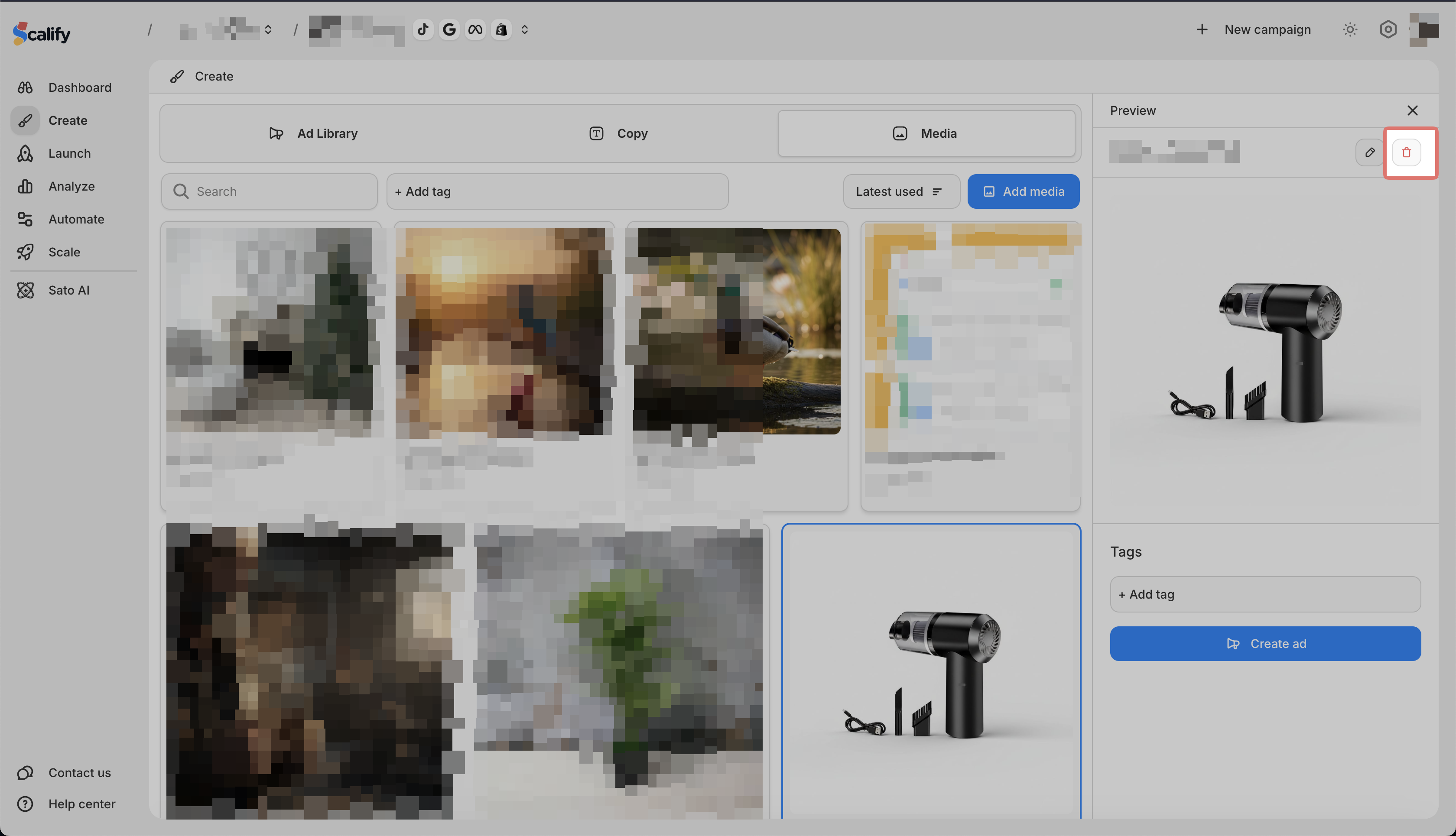 Find the media you want to delete and click on it