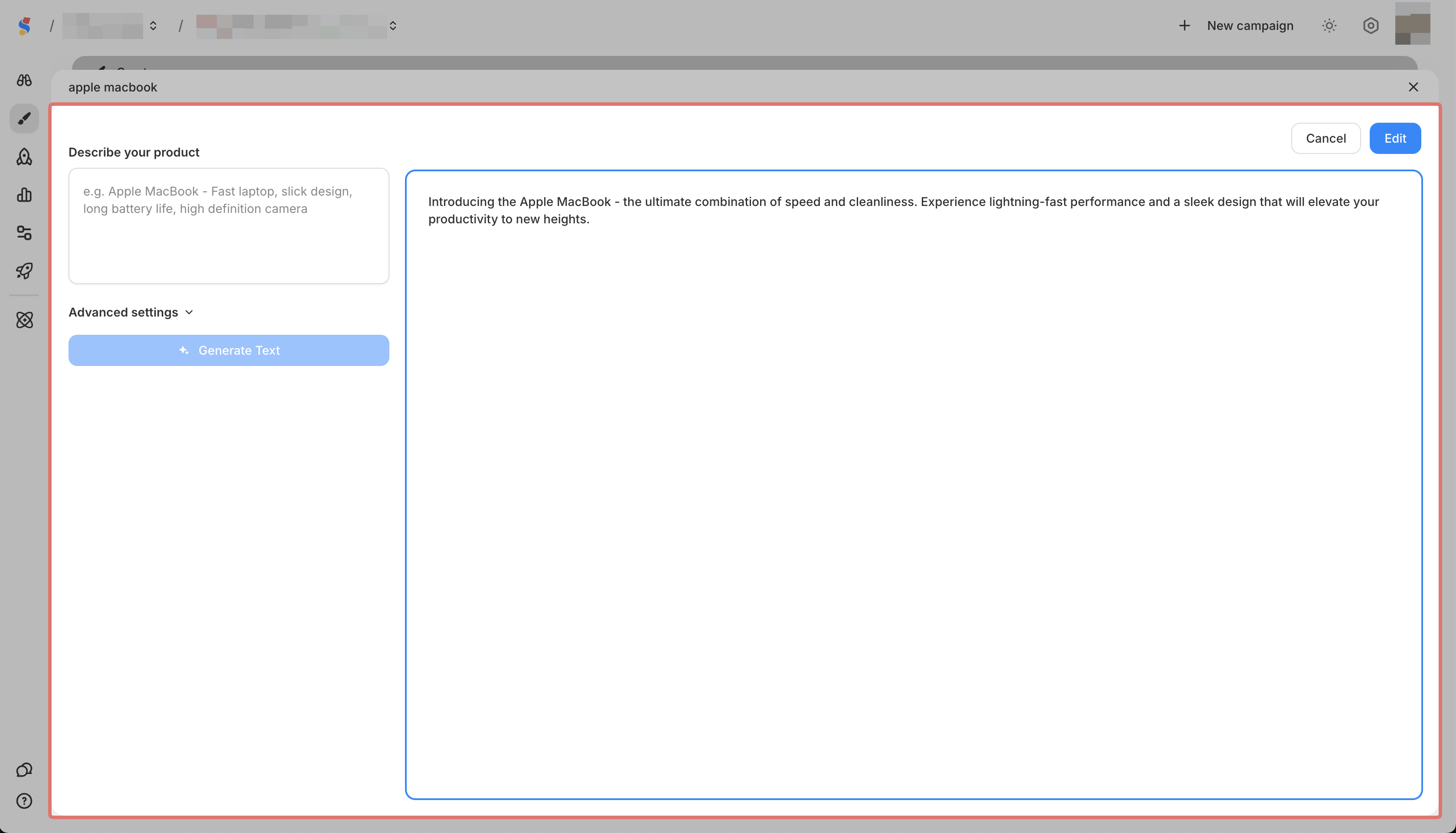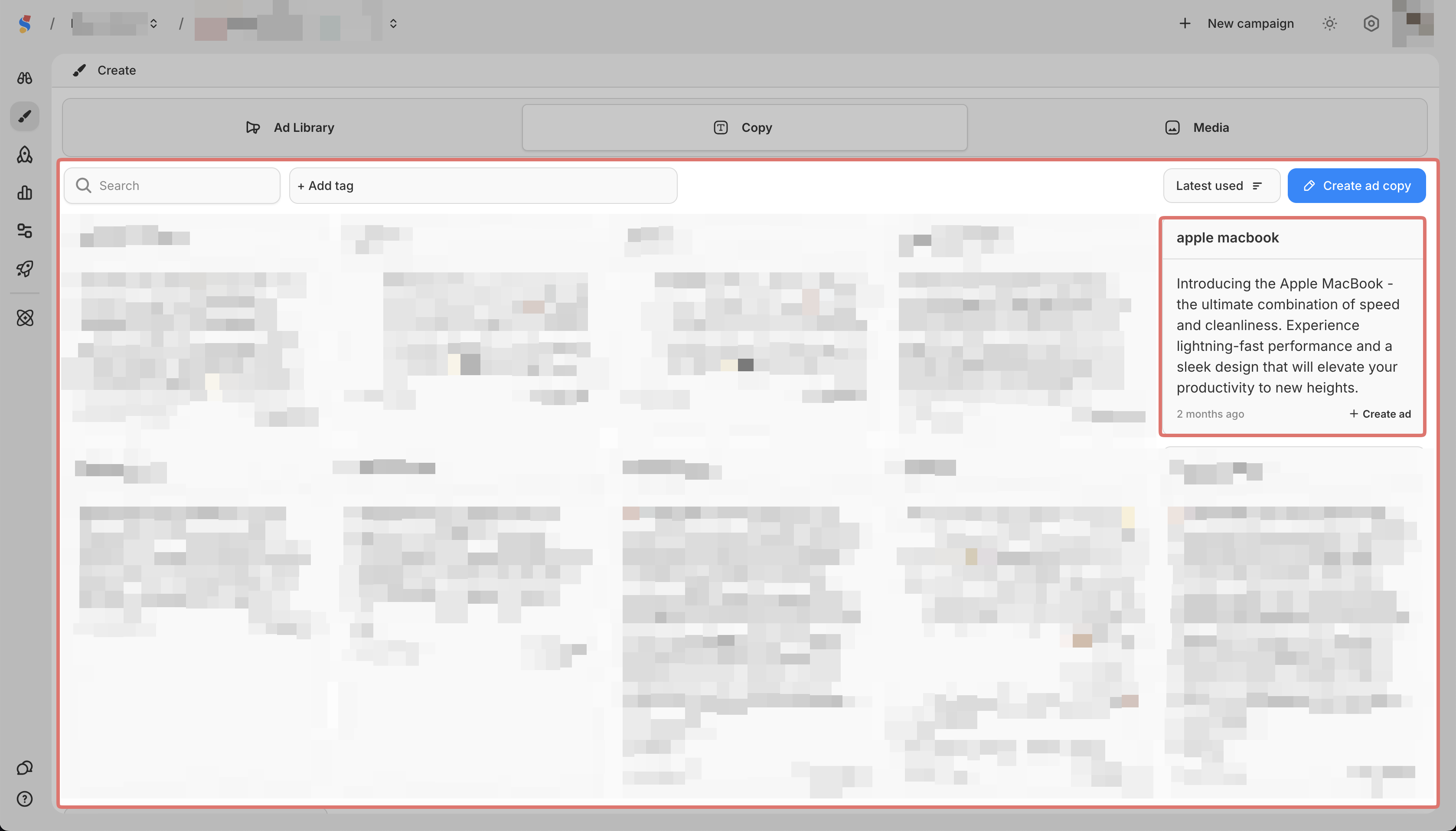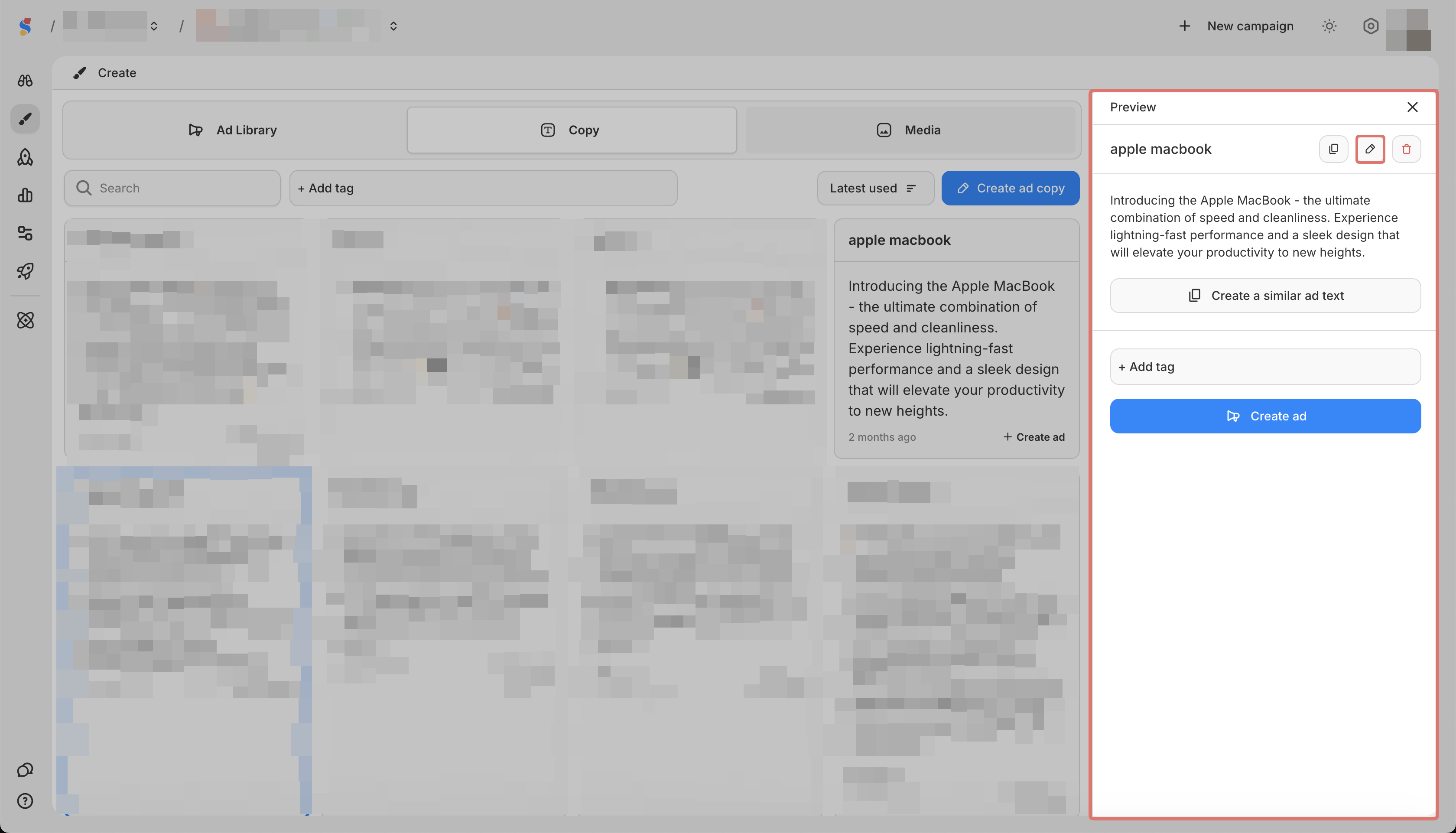 Home Create Editing a saved ad copy