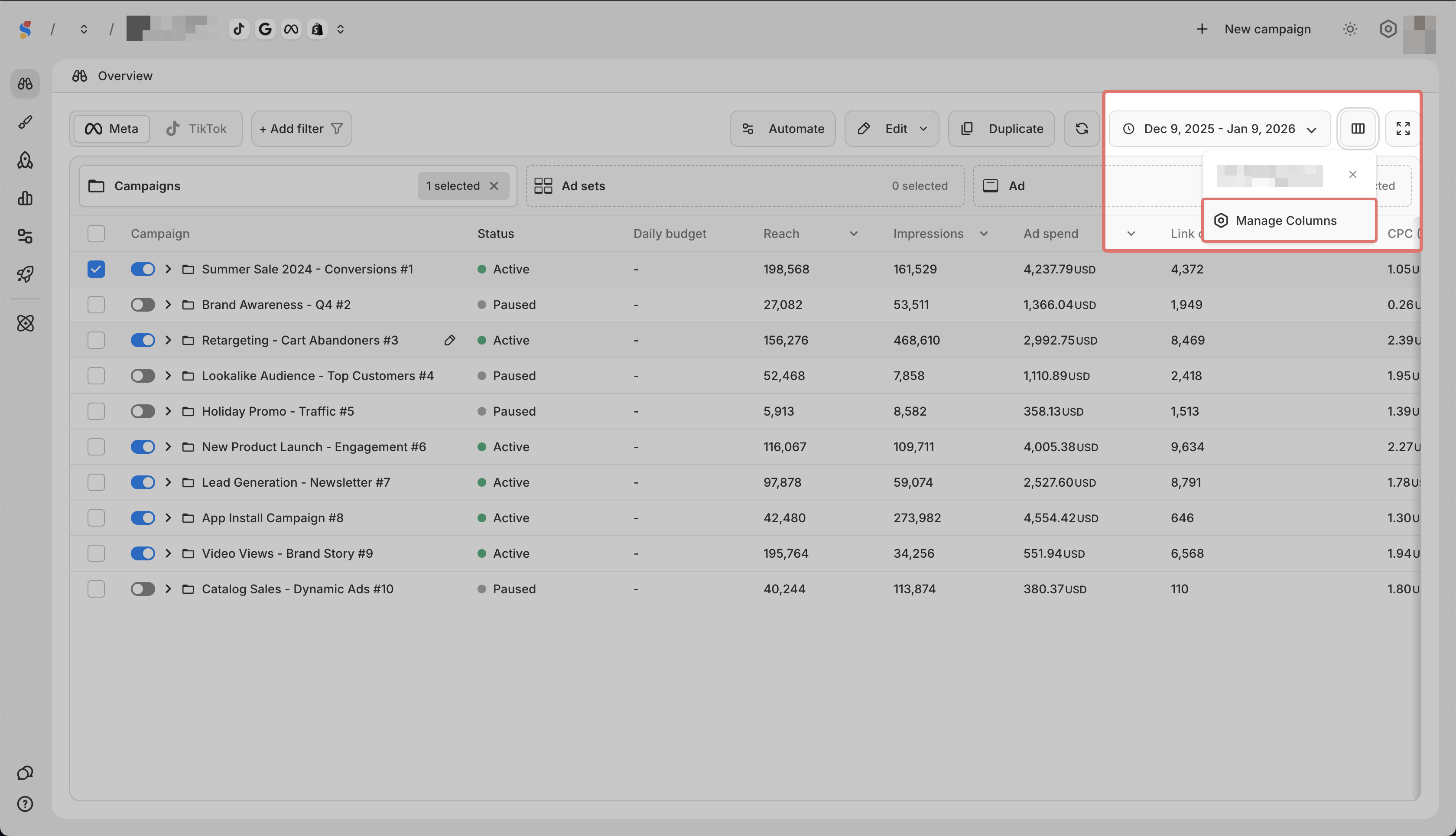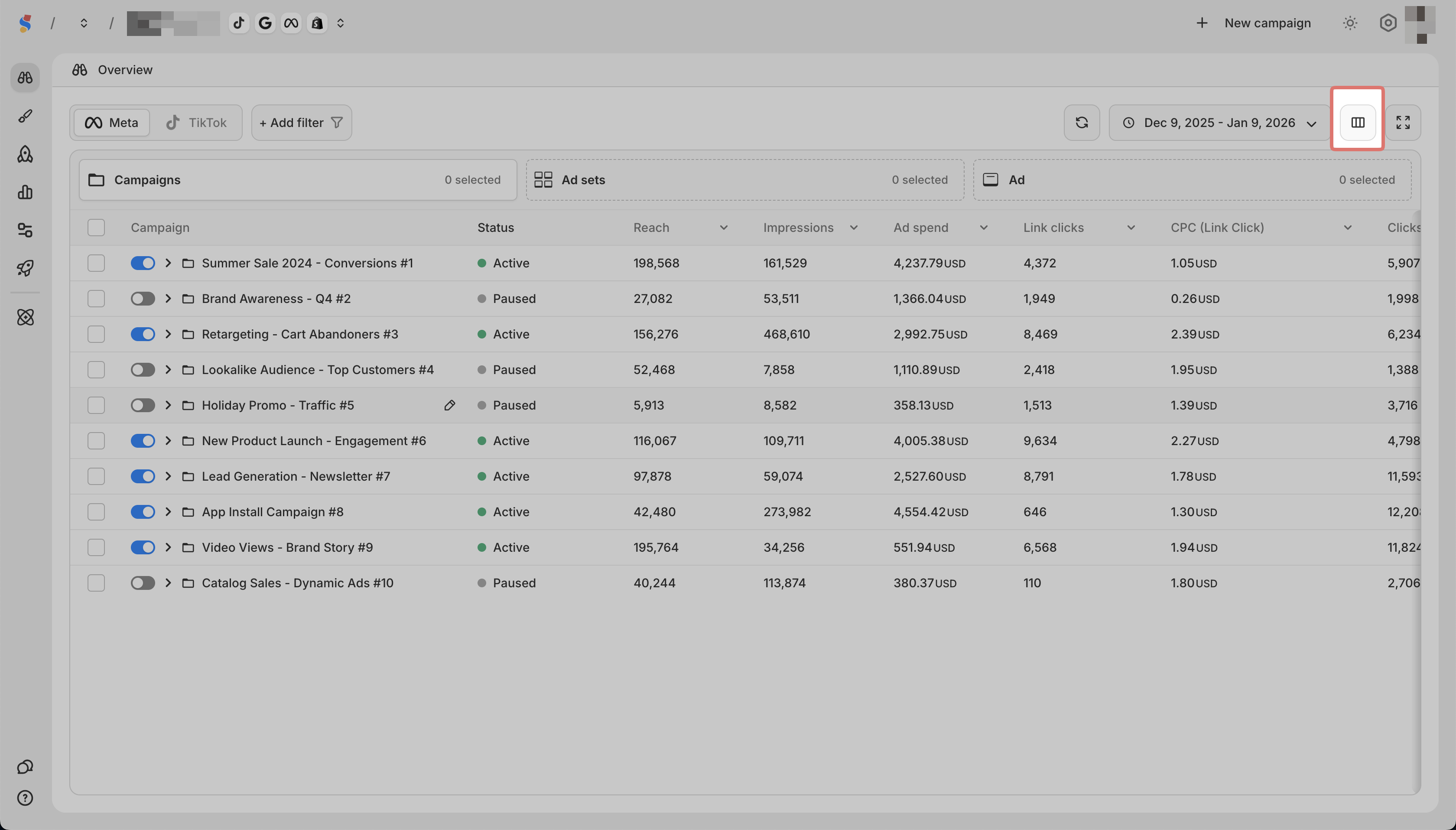 | Status | Whether the campaign is active, paused, or off |