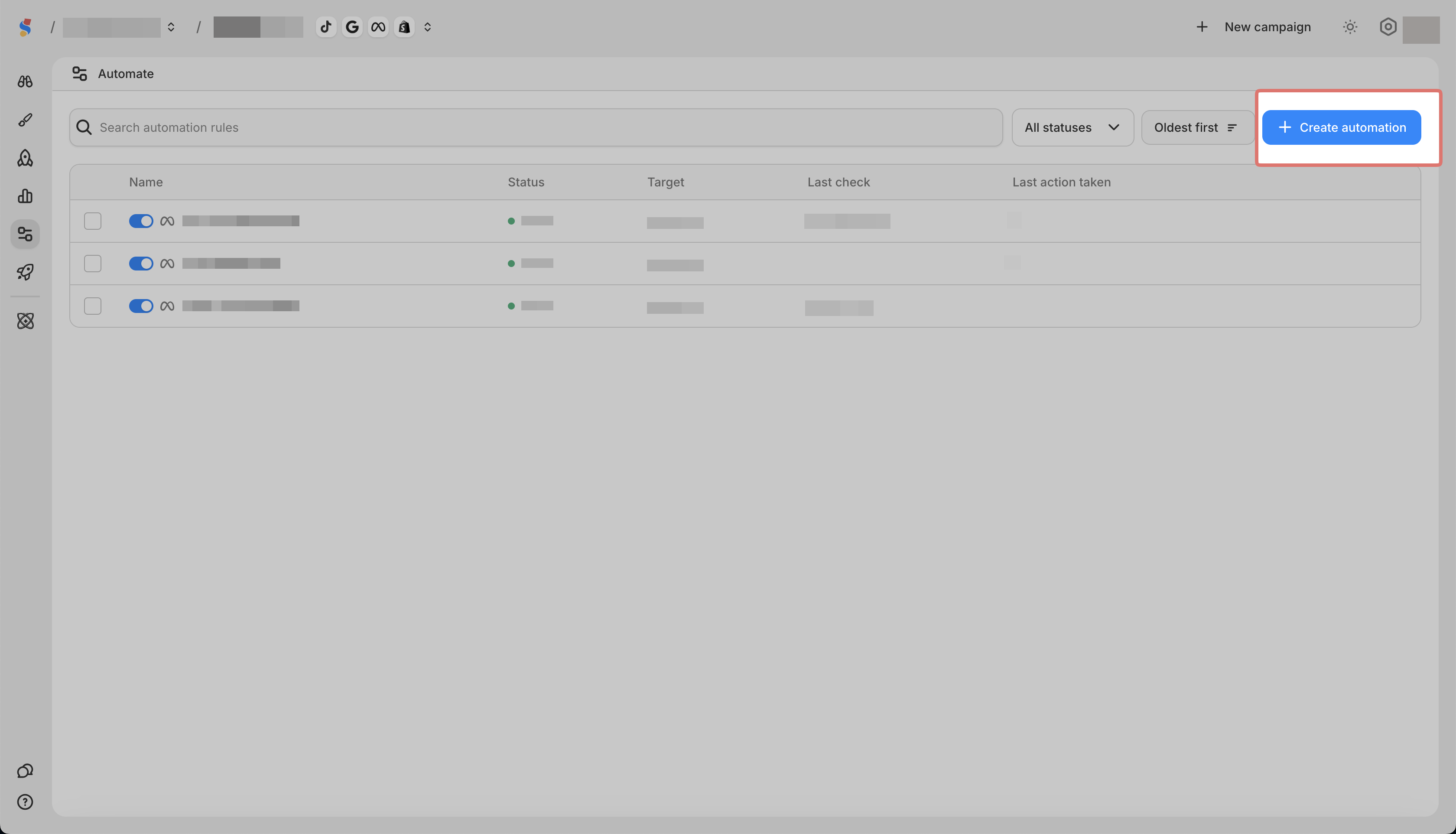 Automation rules for Meta work the same as other platforms.