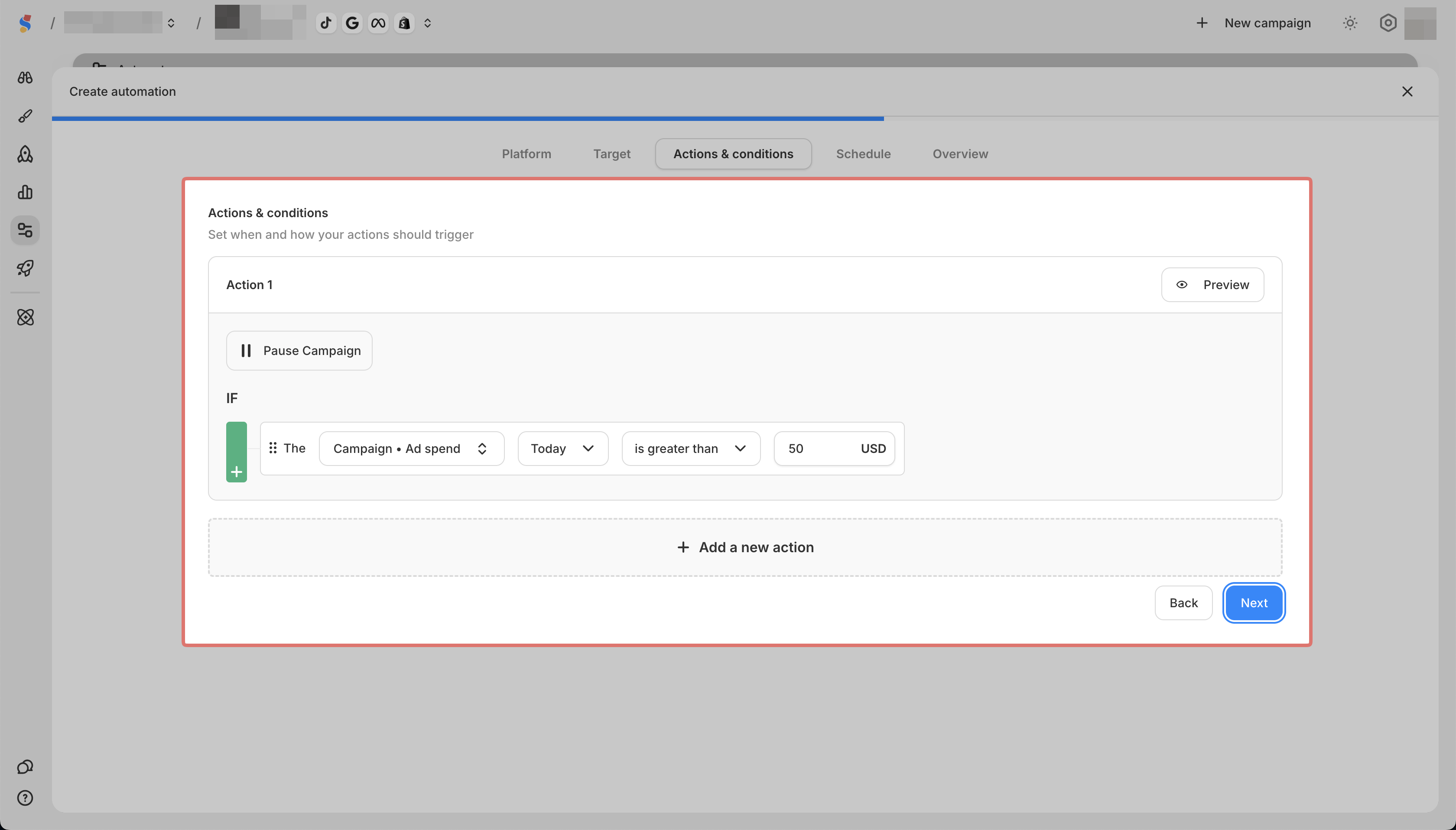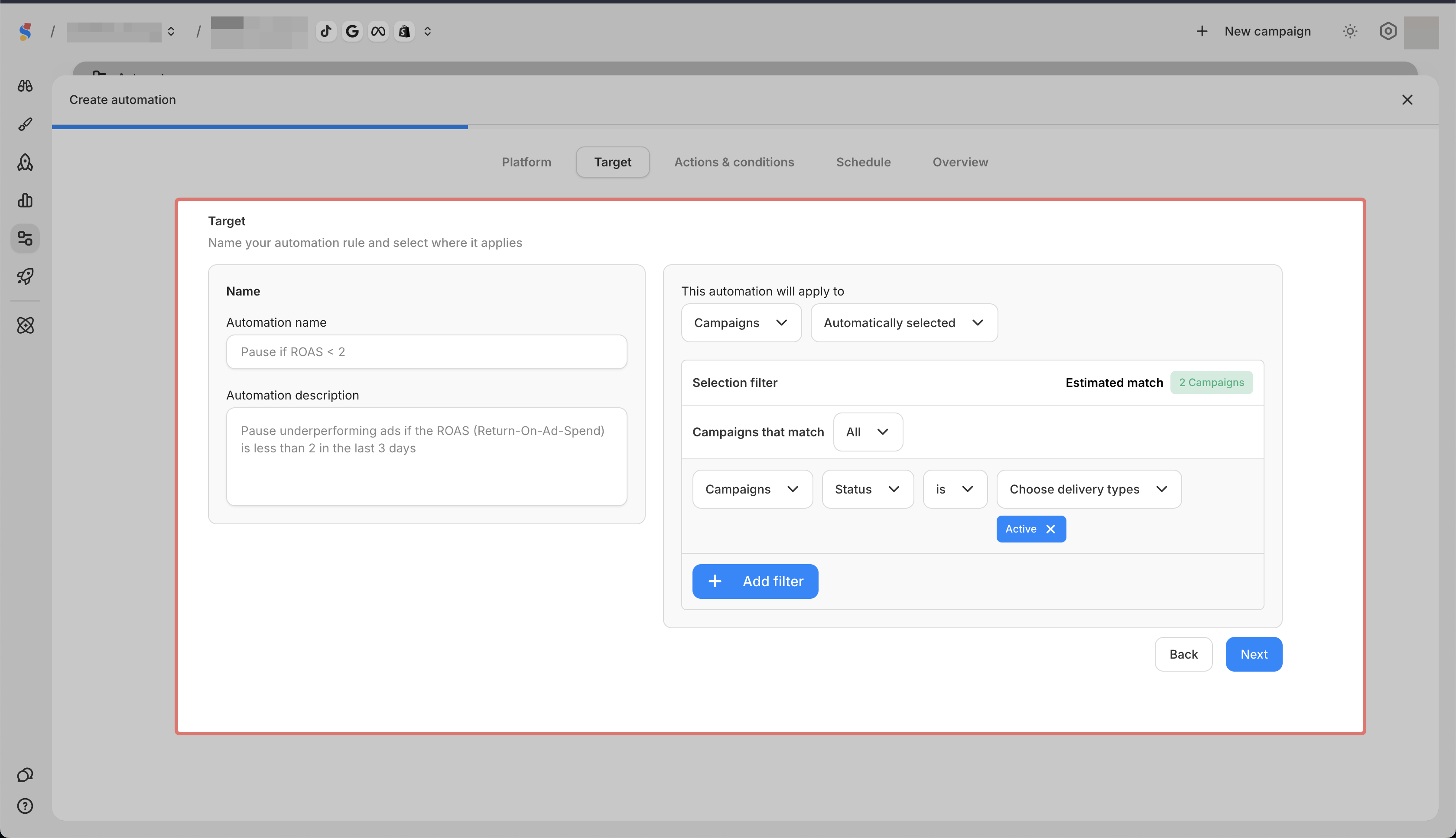 Creating an automation rule for Meta