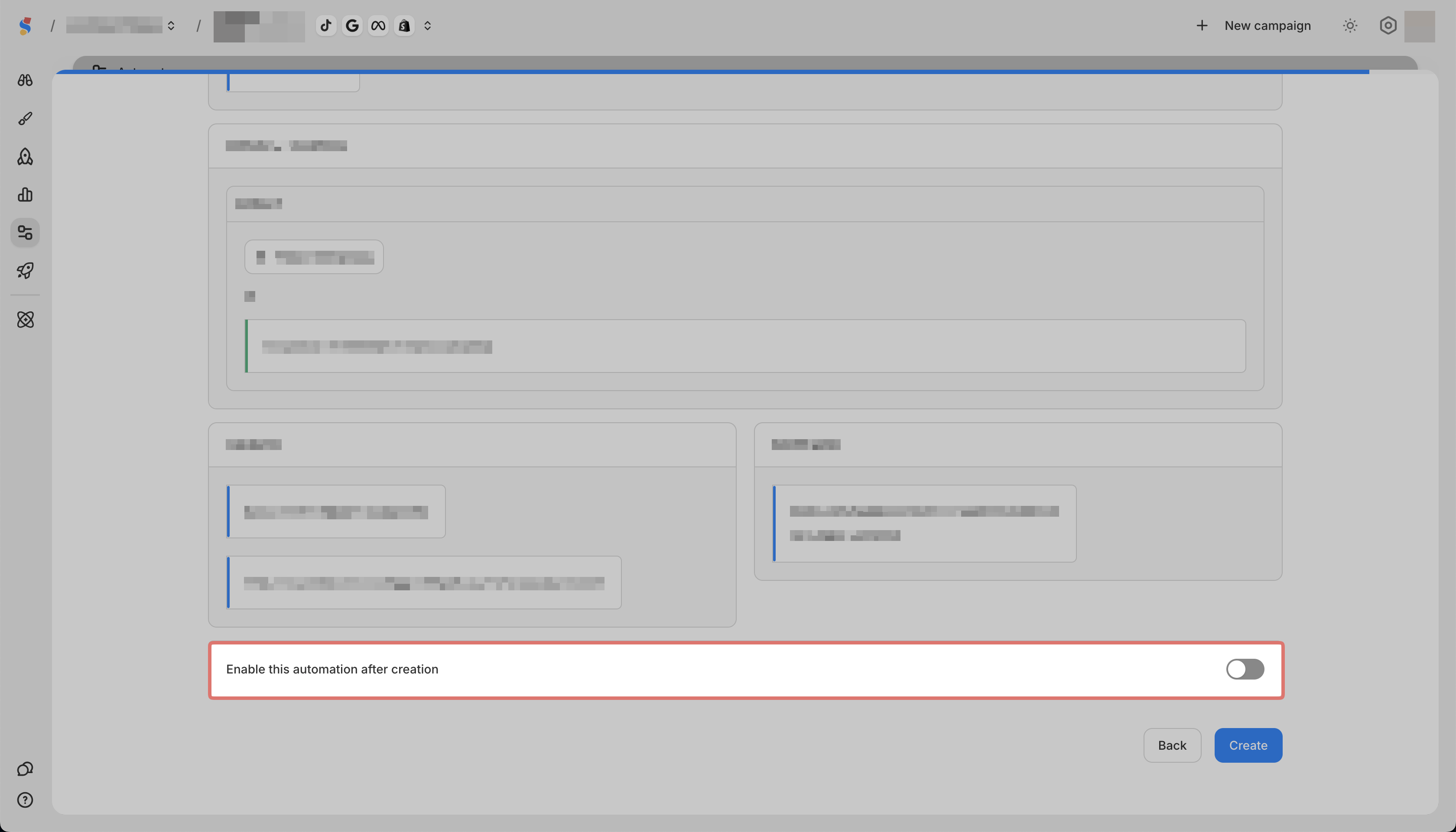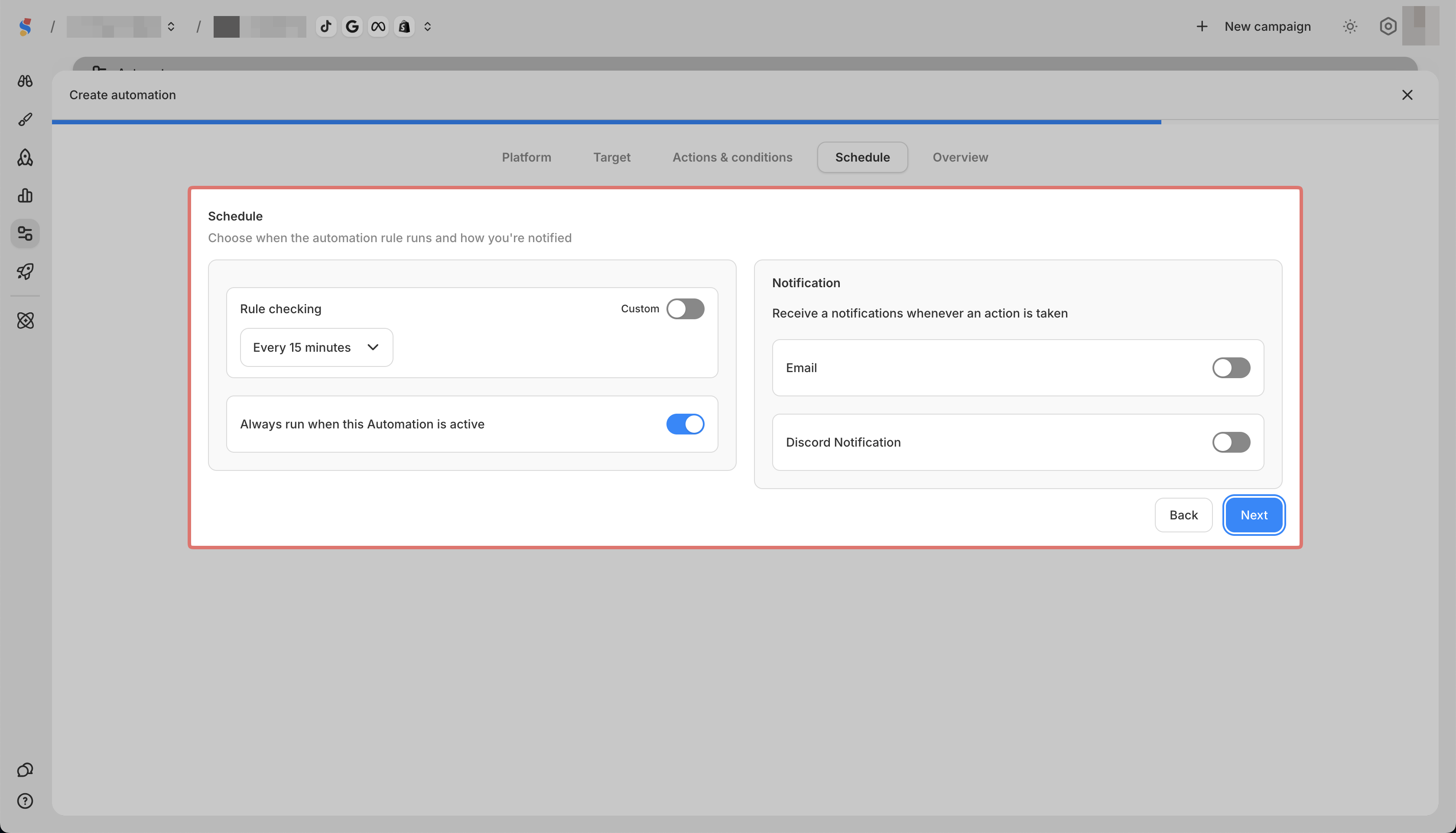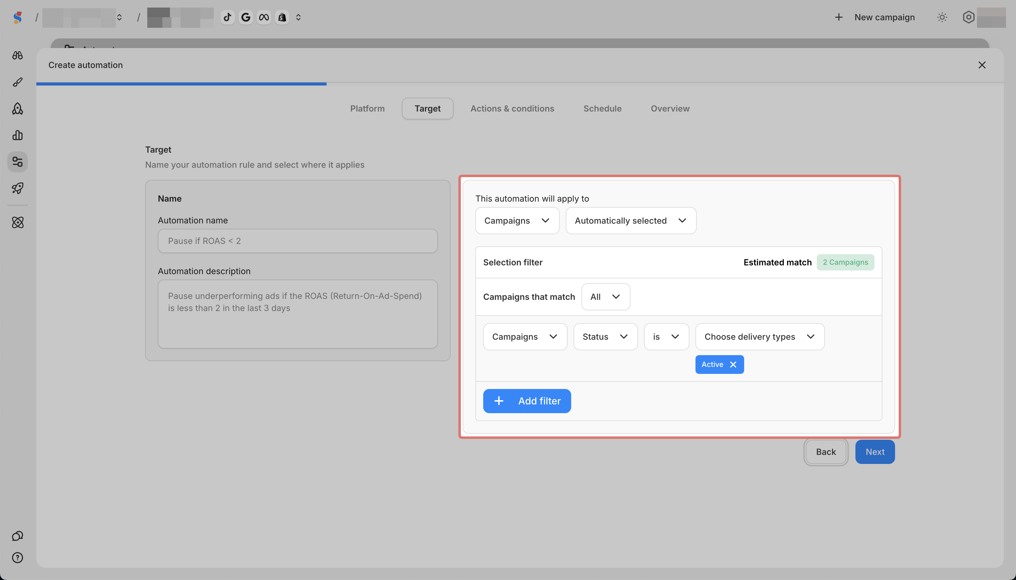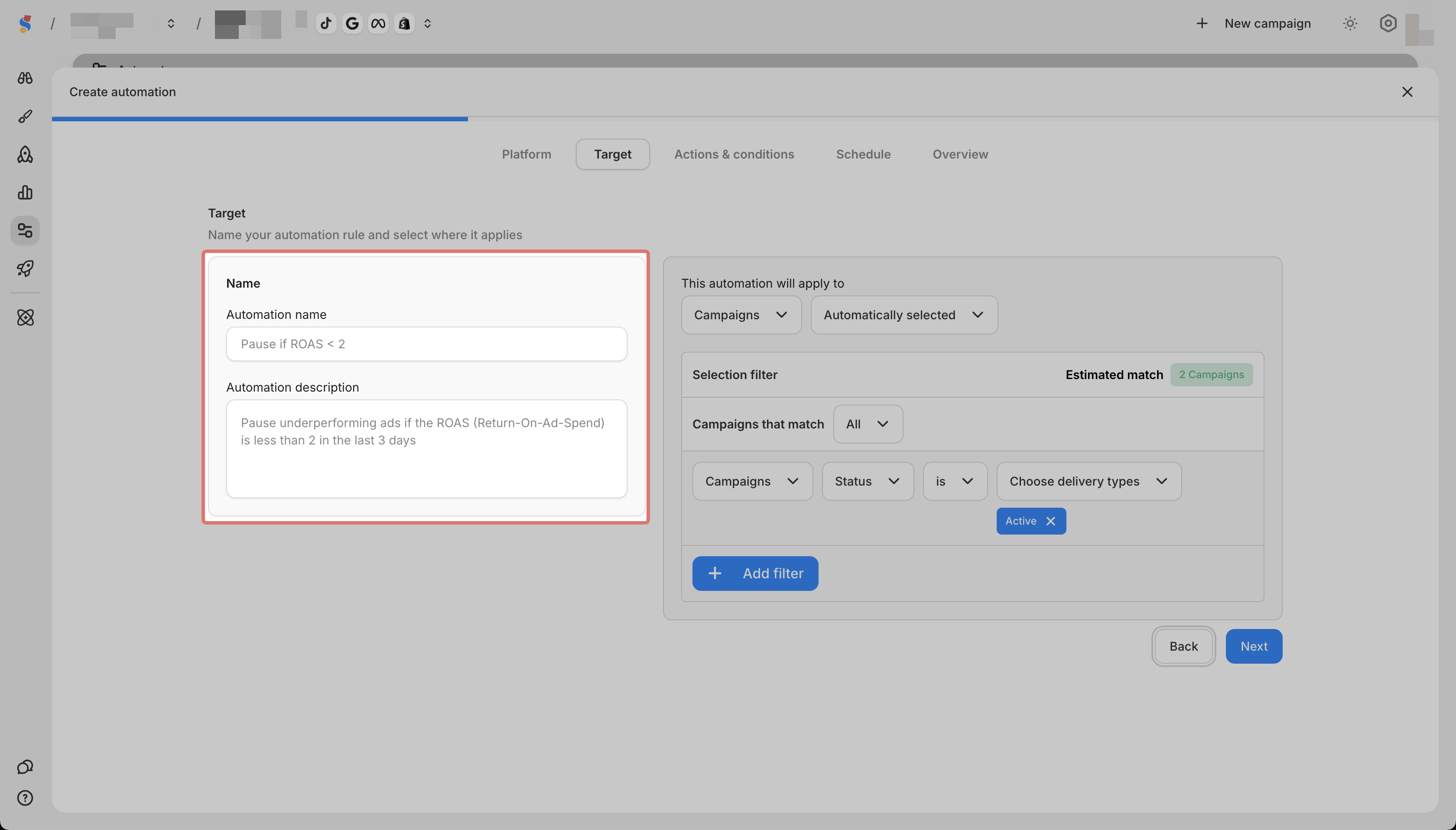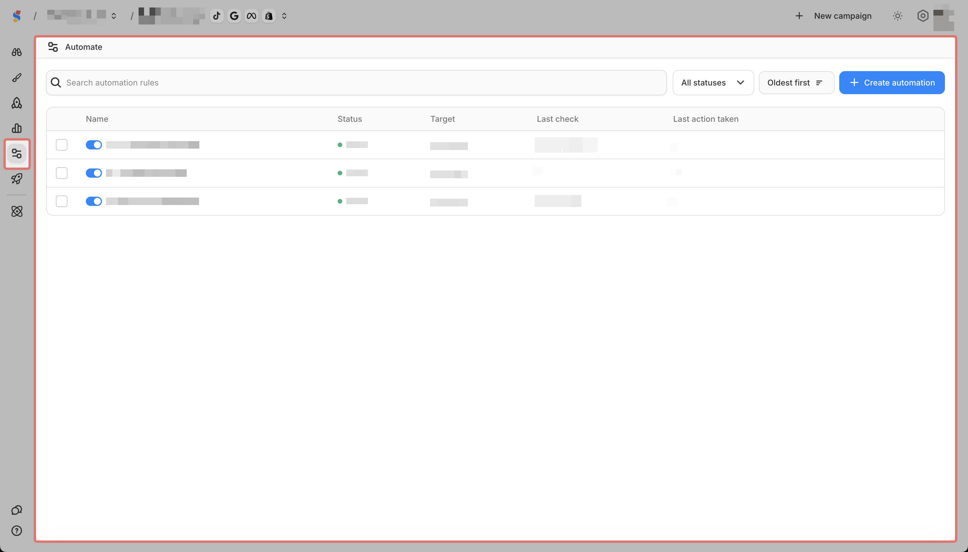 You can create automation rules for Meta and TikTok campaigns.